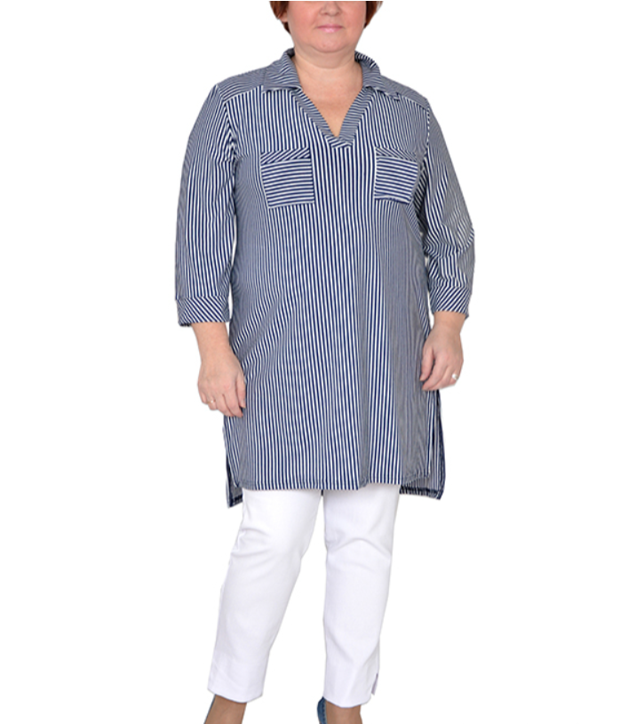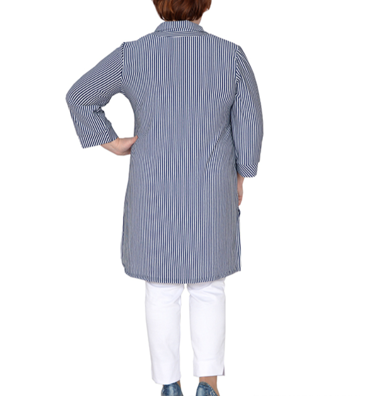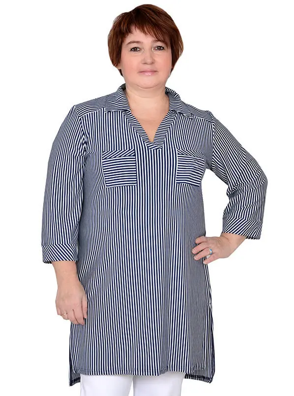 Туника удлиненная с разрезами из вискозного трикотажного полотна. С планками по горловине, с карманами и с воротником. Рукав на манжете. Длина 85-95 см.