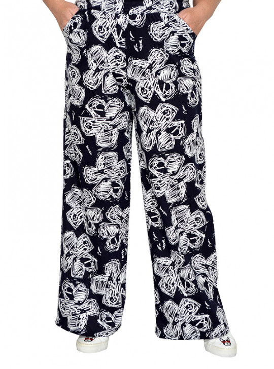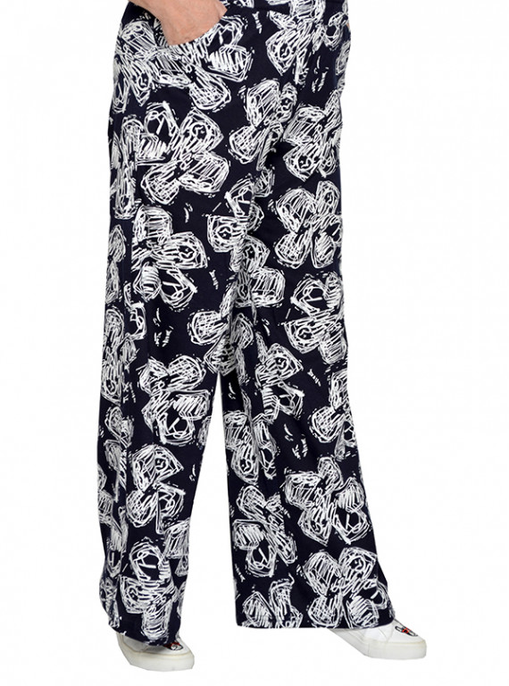 Брюки широкие, с карманами из трикотажного полотна. Состав хлопок 100%. Пояс на широкой резинке.