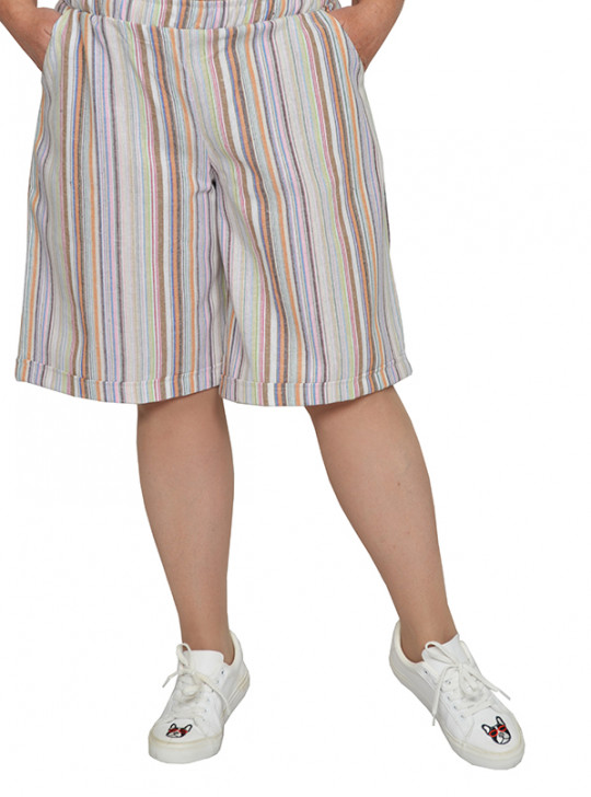 Шорты с карманами, пояс на широкой резинке. Состав 50% лен, 50% пэ.