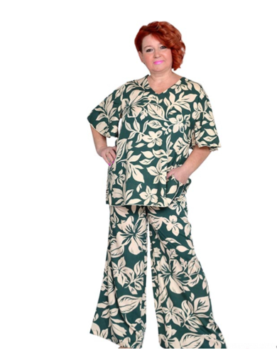 Брюки с карманами, расклешенные из штапеля. Пояс на широкой резинке. Ткань очень приятная к телу.