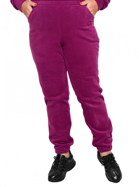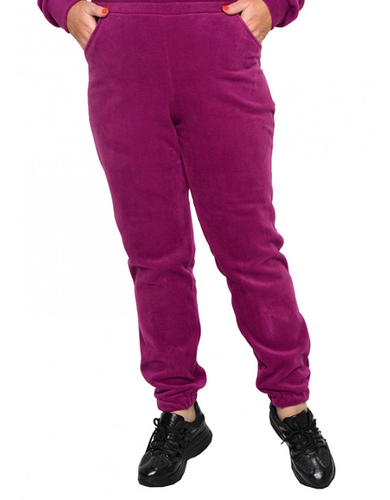 Брюки из трикотажного полотна флис. Состав 100% пэ. Модель с карманами, пояс на широкой резинке. Низ брюк на резинке.