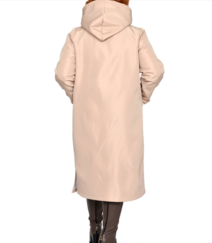 Плащ из плащевки на флисе. Состав 100% пэ. Модель с декоративной отделкой, на молнии, с капюшоном, рукав втачной. Длина 110-120 см.