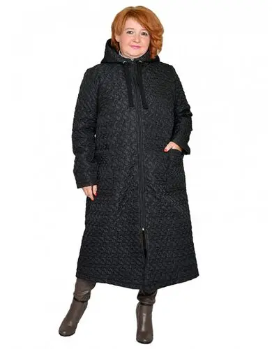 Пальто-плащ из болония стеганного на тонком синтепоне. Состав верха 100% пэ. Модель с хлопковой подкладкой, на молнии, с капюшоном, с карманами. Длина 110-120 см.