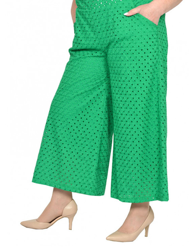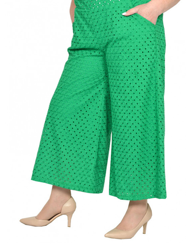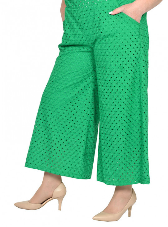 > Брюки укороченные, расклешенные из ткани батист с шитьем
