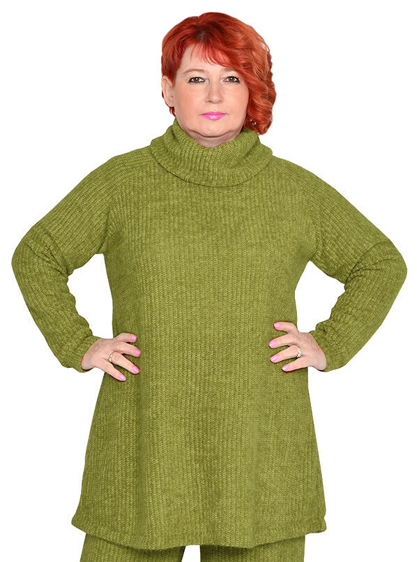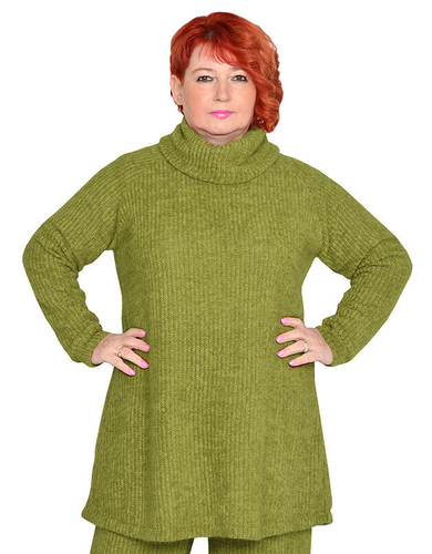 Свитер из трикотажного полотна «АНГОРА» с большим воротником, рукав реглан на манжете. Состав 95% полиакрил и 5% эластан. Ткань плотная, не мнется, хорошо тянется, мягкая, приятная на ощупь. Длина 80-90 см.