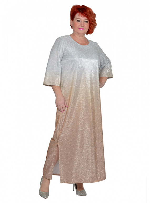 Платье из трикотажного полотна масло с напылением блеска с разрезами по бокам