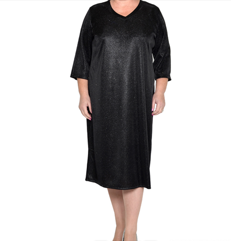 > Платье из трикотажного полотна масло с напылением блеска черное