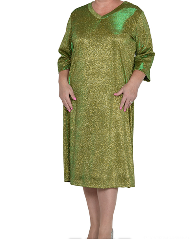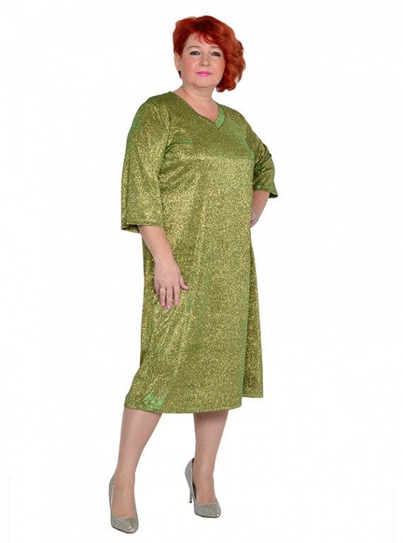 Платье из трикотажного полотна масло с напылением блеска зеленое