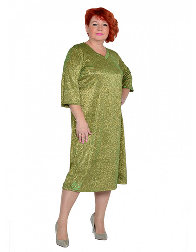 > Платье из трикотажного полотна масло с напылением блеска зеленое