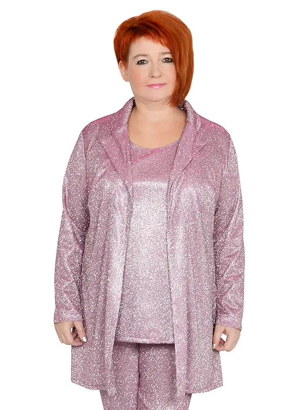 Жакет из трикотажа масло, без застежки. Состав пэ 95% и эластан 5%. Ткань с отливом «хамелеон», при движении меняет оттенок. Ткань приятная к телу, не колется.