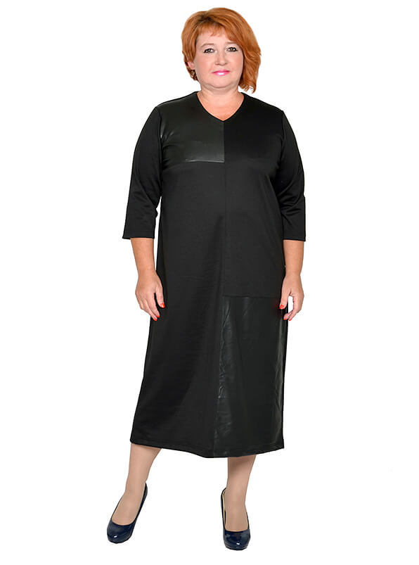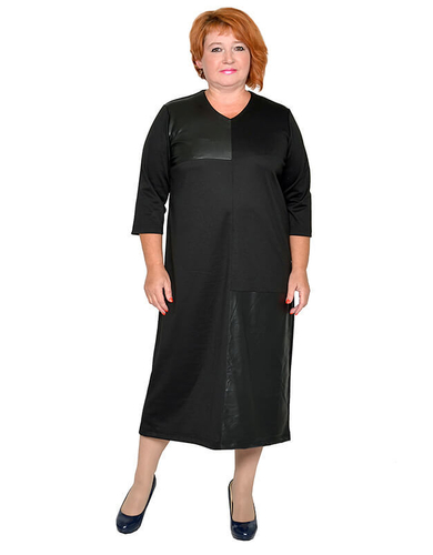 Платье из трикотажного полотна милано с отделкой из эко кожи. Ткань хорошо тянется, приятная к телу, мягкая. Состав 30% пэ, 70% вискоза.