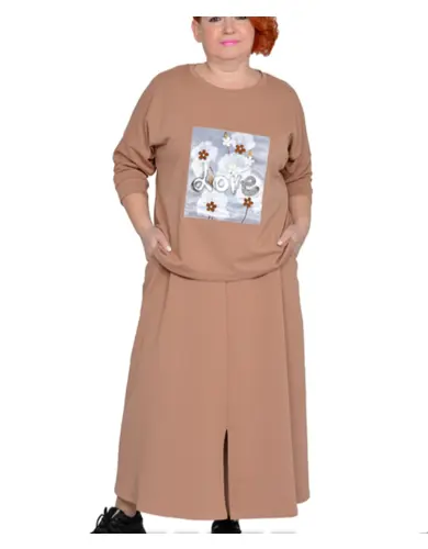 Юбка из ткани футер двух-нитка с карманами и разрезом по переду. Состав хлопок 65%, 30% пэ и 5 % эластан. Ткань тянется.