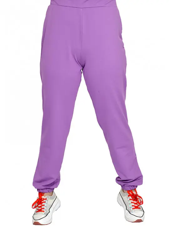 Брюки из плотного трикотажного полотна футер двух-нитка. Состав пэ 65%, хлопок 35% и 5% эластан. Низ на резинке, пояс на широкой резинке.