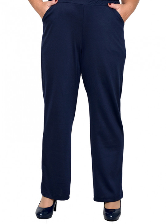 Брюки из трикотажного плотного полотна милано. Состав 30% пэ, 70% вискоза. Модель с карманами, пояс на широкой резинке.