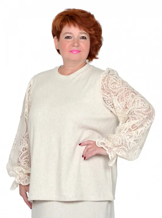 > Туника из ангоры лапша с рукавами из плетеного кружева