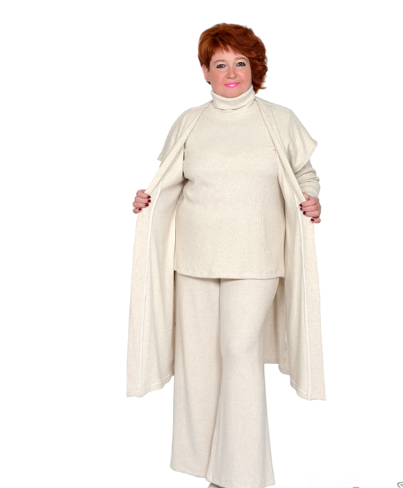 Кардиган из ангоры лапша. Состав 95% акрил, 5% эластан. Ткань имеет упругую растяжку, не вытягивается, не мнется, очень теплая и приятная к телу.