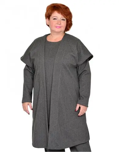 Кардиган из костюмной ткани. Состав 83% акрил, 15% шерсть, 2% эластан. Ткань имеет упругую растяжку, не вытягивается, не мнется, очень теплая и приятная к телу. Модель без застежки.