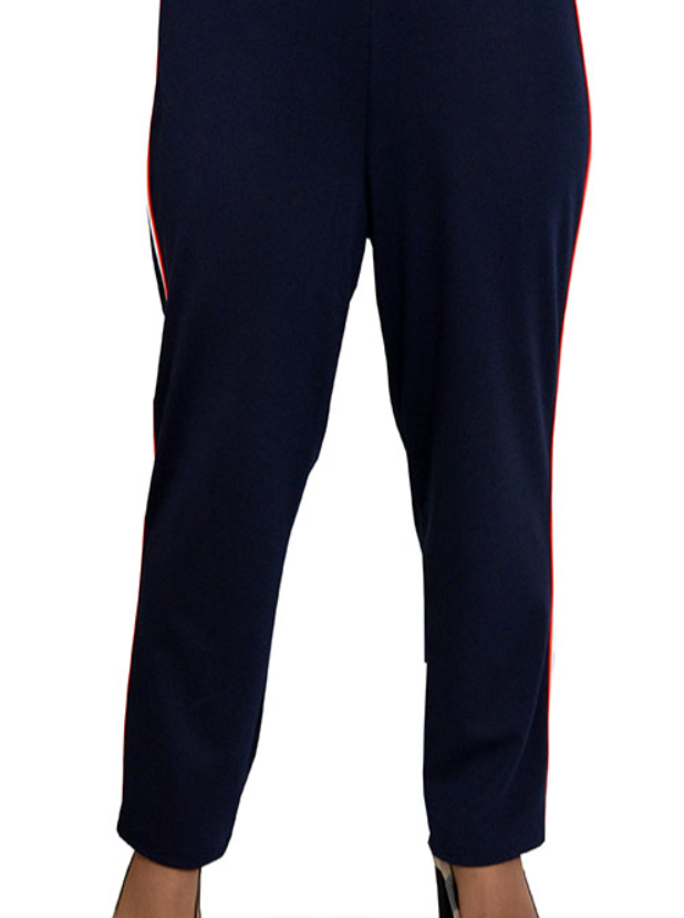 Брюки из ткани милано с декоративными лампасами по боковому шву.