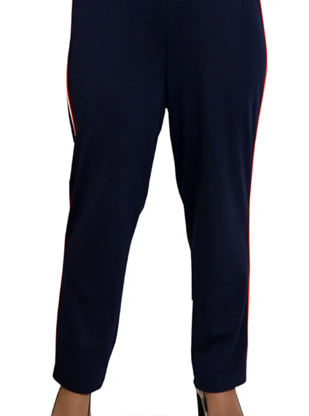 > Брюки из ткани милано с декоративными лампасами по боковому шву