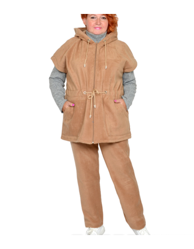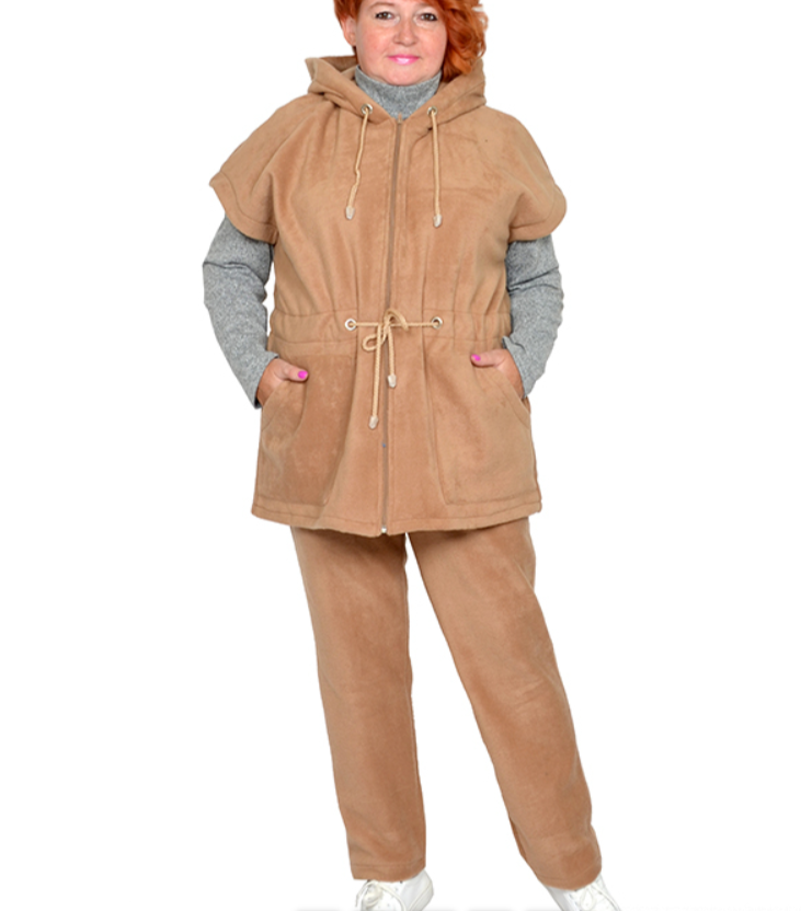 Жилет с карманами, пояс на кулиске, с капюшоном из трикотажного полотна флис. Состав пэ 100%.