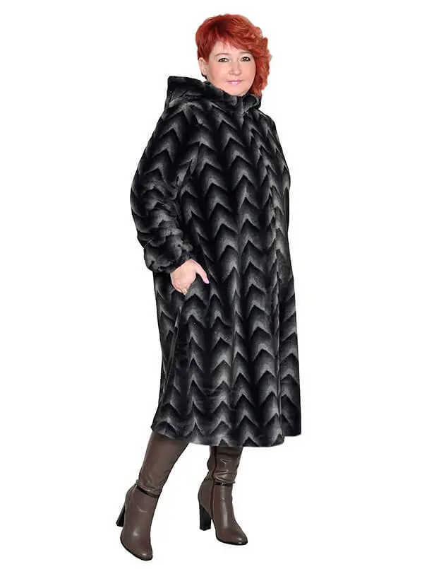 Шубка из искусственного меха под шиншиллу с капюшоном