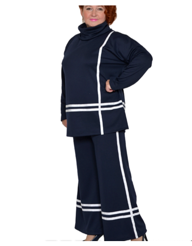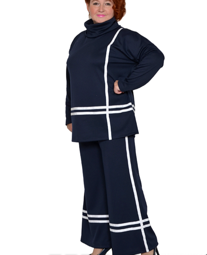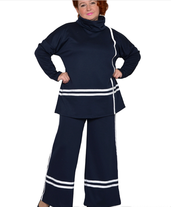 Туника с тесьмой, с большим воротником из трикотажа милано
