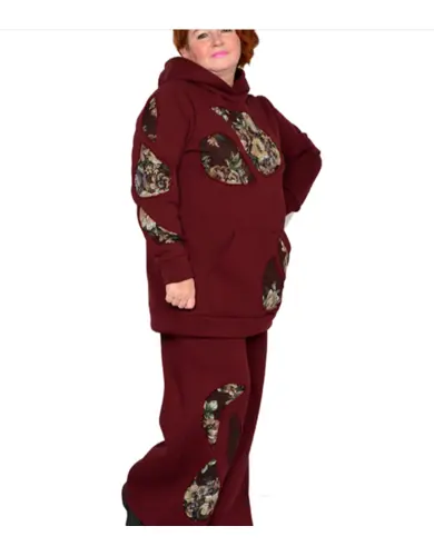 Брюки из трикотажного полотна футер трехнитка с начесом. Аппликация из гобелена. Состав 35% пэ, 60% хлопок, 5% эластан. Лицевая сторона гладкая, изнанка с начесом.