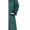 Дубленка длинная с разрезами по бокам из искусственной двухсторонней замши, с карманами, отложной воротник, застежка-потайные кнопки. Ткань хорошо тянется, теплая. приятная к телу, не мнется. Состав пэ 95% и эластан 5 %. Модель без подкладки на прохладную погоду, евро зима. Длина 110-120 см.