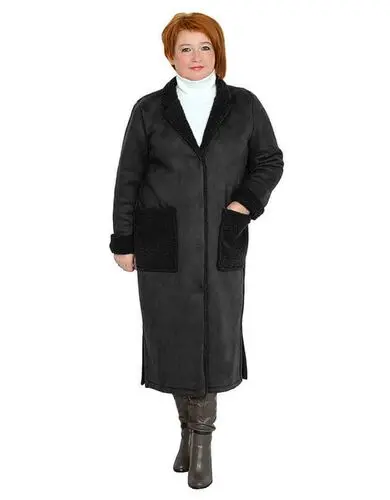 Дубленка длинная с разрезами по бокам из искусственной двухсторонней замши