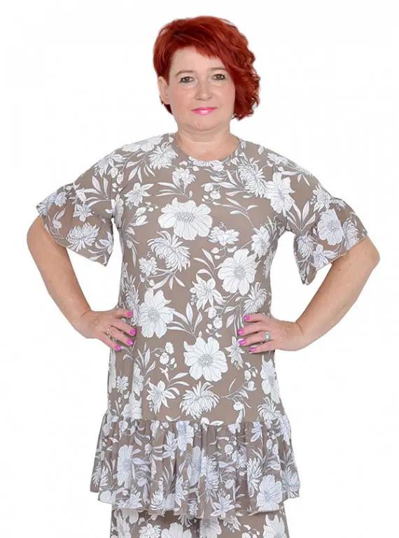 Туника из трикотажного полотна масло и шифона с оборкой
