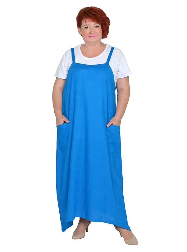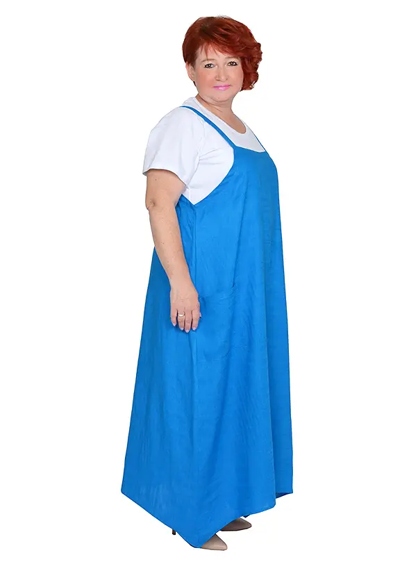 > Сарафан из полу льняной ткани и футболка из хлопка