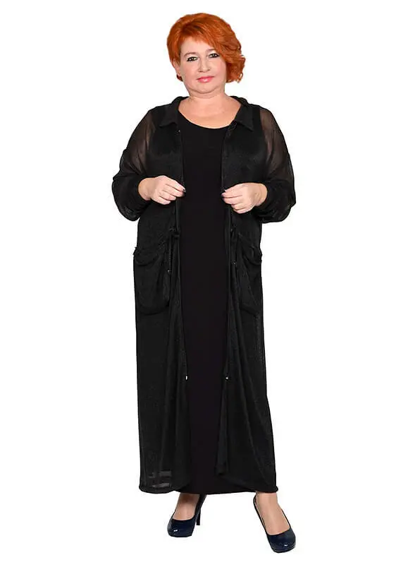 Накидка из трикотажного полотна сетка. Состав пэ 95%, эластан 5%. Модель с карманами, по талии кулиса Ткань не мнется, не колется, приятная к телу. Платье-майка из трикотажного полотна масло. Состав пэ 100%. Ткань не мнется, приятная к телу. Летом хорошо дает ощущение прохлады.