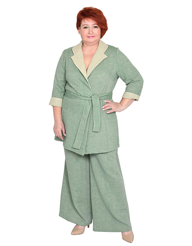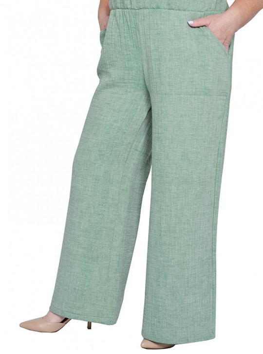 Брюки-клеш, пояс на широкой резинке хлопок 65% фисташковый