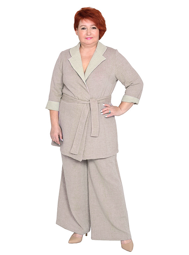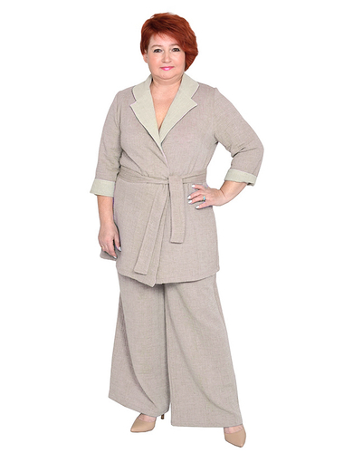 Жакет без застежки, в комплект входит пояс хлопок 65% бежевый