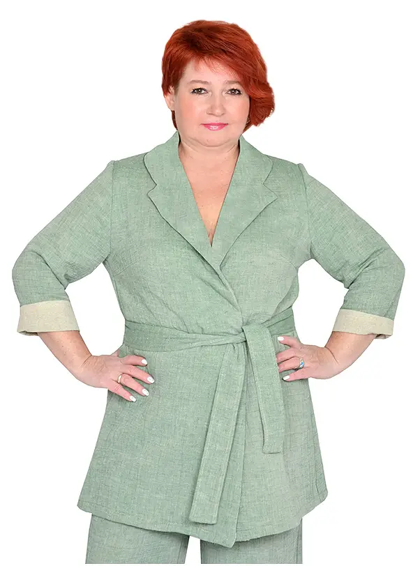 Жакет без застежки, в комплект входит пояс. Состав хлопок 65% и 35% пэ, не тянется. Ткань приятная к телу, мягкая, легкая, двухслойная марлевка.