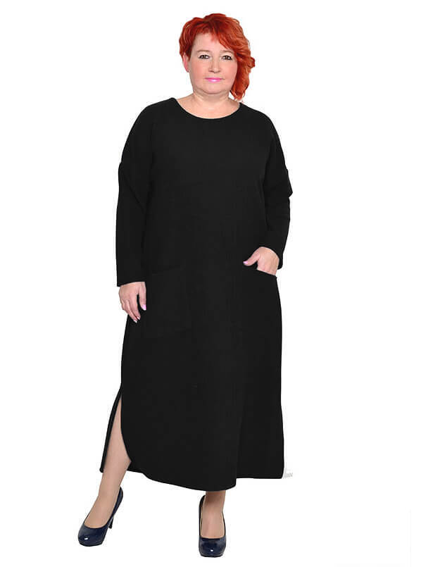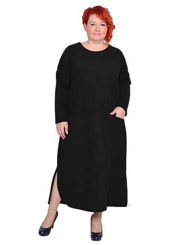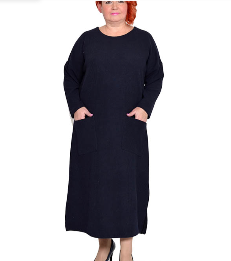 Платье с карманами из плотного трикотажного полотна. Состав 97% акрил и 3% эластан. Ткань тянется, не мнется, держит форму.
