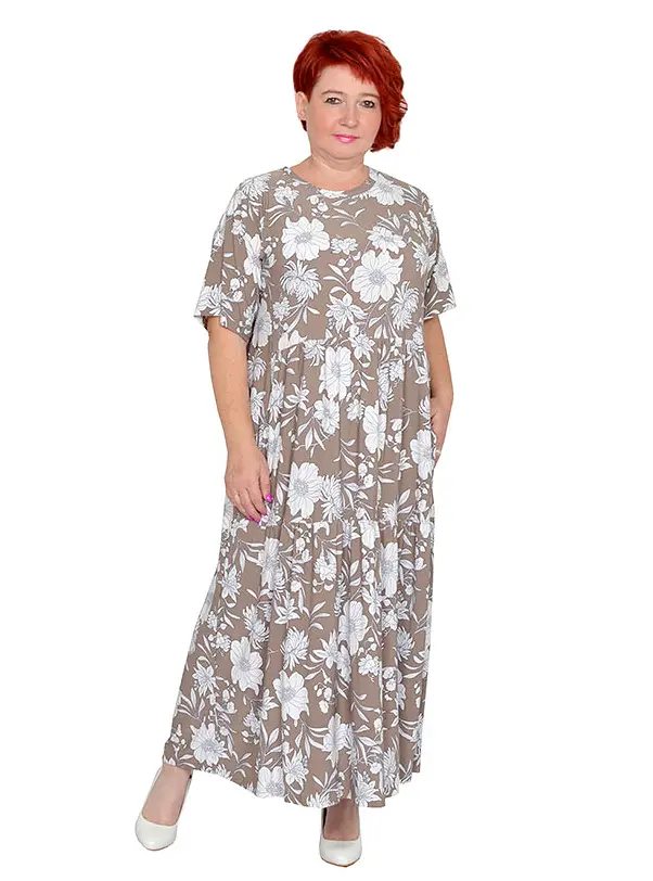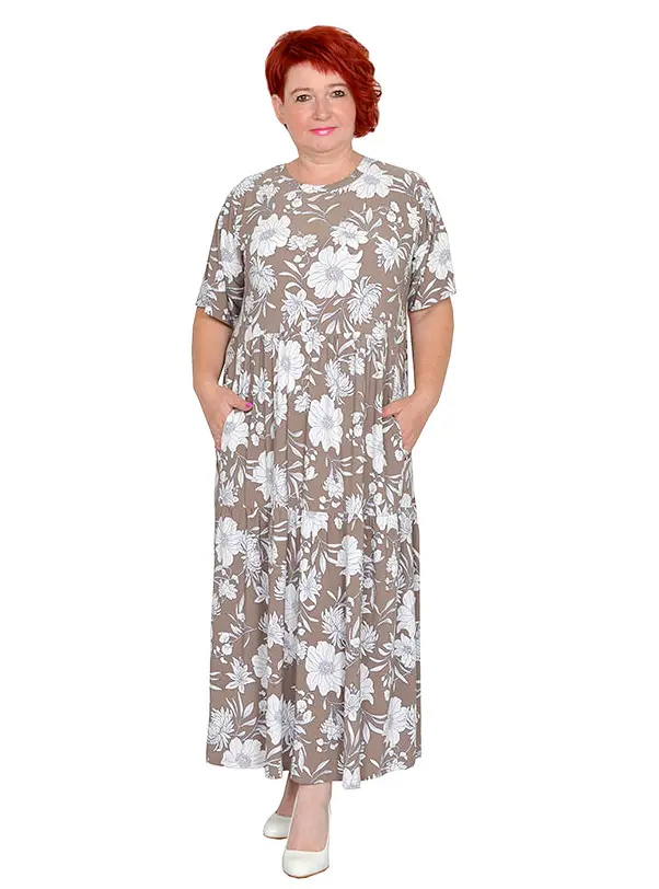 Платье в стиле бохо с карманами из трикотажного полотна масло.