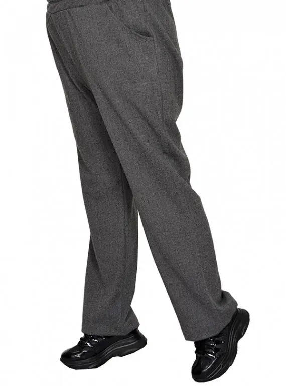 Брюки из костюмной ткани. Состав 83% акрил, 15% шерсть, 2% эластан. Ткань имеет упругую растяжку, не вытягивается, не мнется, очень теплая и приятная к телу. Модель с карманами, пояс на широкой резинке.