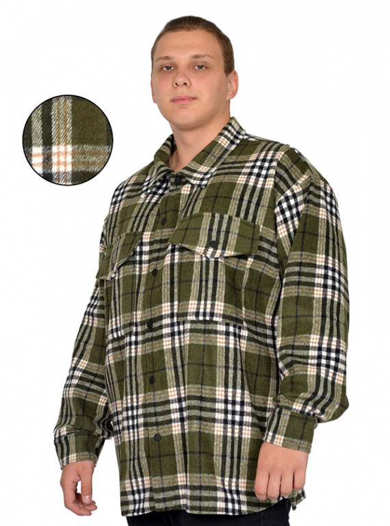 Рубашка с карманами, на кнопках, с воротником из ткани фланель. Состав хлопок 35%, акрил 65%.Ткань не мнется, не тянется, приятная к телу, легкая и теплая.