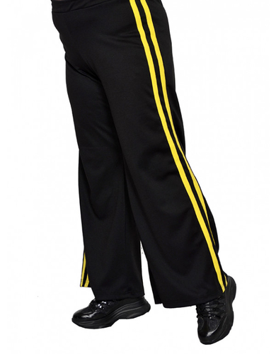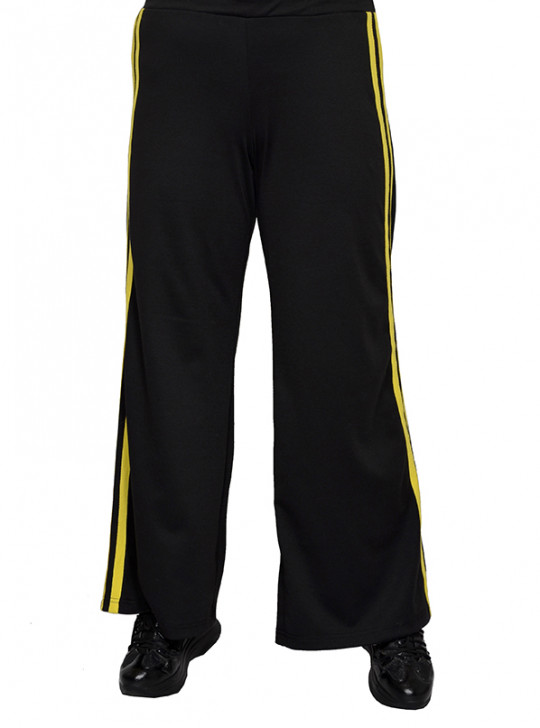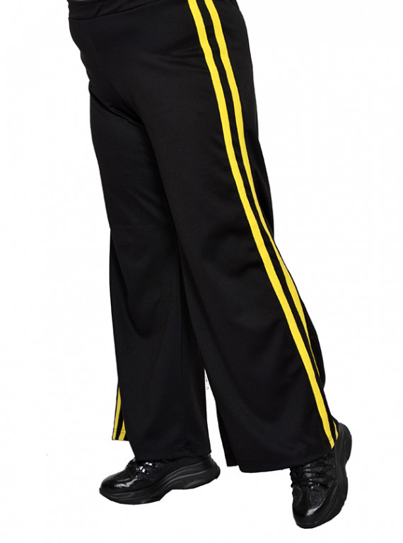 Брюки из трикотажного полотна милано. Состав 70% вискоза, 30% пэ. Ткань хорошо тянется. Модель с карманами, по бокам лампасы, пояс на широкой резинке.