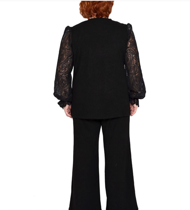 Туника из трикотажного полотна «ангора-лапша» с рукавами из плетеного кружева