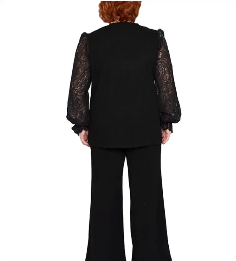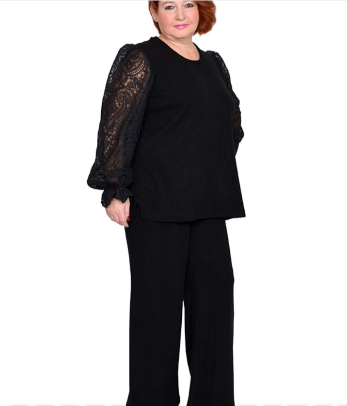 Туника из трикотажного полотна «ангора-лапша» с рукавами из плетеного кружева. Состав 95% акрил, 5% эластан. Кружево состав 100% хлопок. Ткань очень теплая, имеет упругую растяжку, не вытягивается, не мнется, приятная к телу.