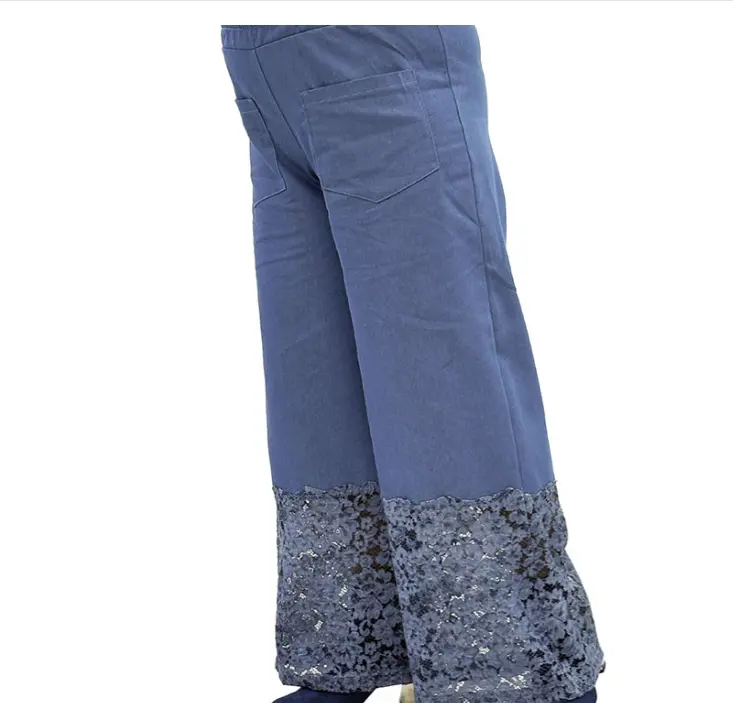 > Брюки широкие с карманами из джинсовой и кружевной ткани
