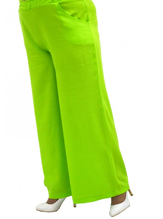 Брюки широкие из льносодержащей ткани. Состав 85% вискоза, 15% лен. Модель с карманами, пояс на широкой резинке. Ткань не тянется, очень легкая, приятная к телу.