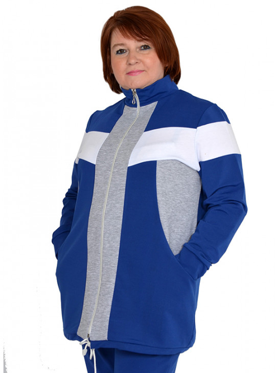 Олимпийка спортивная из трех цветов, из трикотажного полотна футер двух-нитка, с карманами. С воротником-стойка , на молнии.