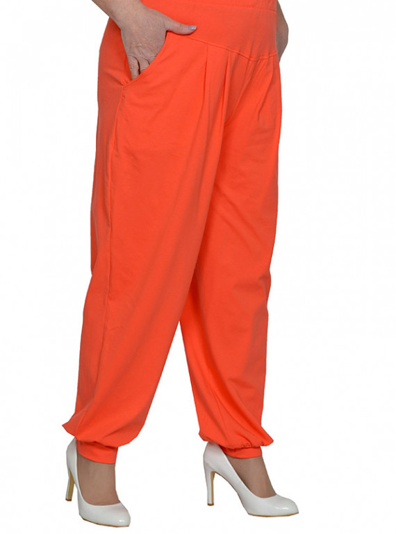 Брюки-султанки из вискозного трикотажного полотна. Состав 100% вискоза. Пояс на широкой резинке, с карманами, по переду кокетка, низ на манжете.