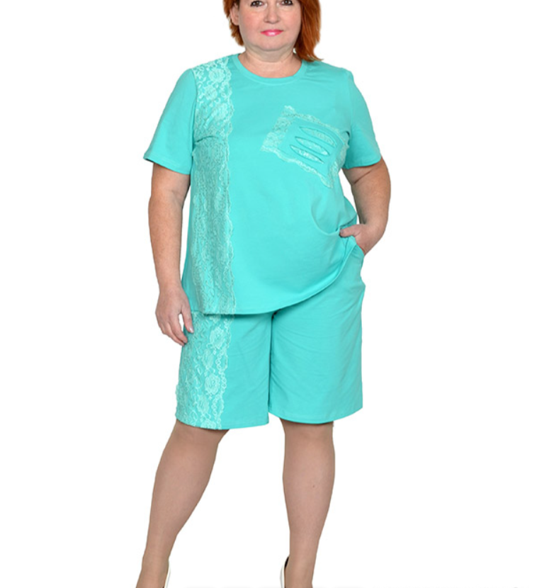 Шорты из вискозного трикотажного полотна. Состав вискоза 100%. Пояс на широкой резинке, с карманами, по переду кружево.