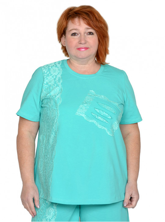 Футболка из вискозного трикотажного полотна. Состав 100% вискоза. По переду декоративный элемент.