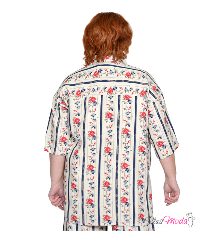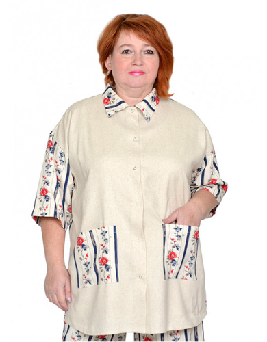 Рубашка из льносодержащей ткани. Состав 85% вискоза,15% лен. Модель с воротником, застегивается на кнопки.
