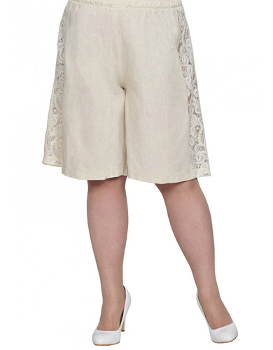 Шорты из льносодержащей ткани с отделкой плетеным кружевом. Состав 85% вискоза,15% лен.Ткань легкая, не тянется, приятная к телу.